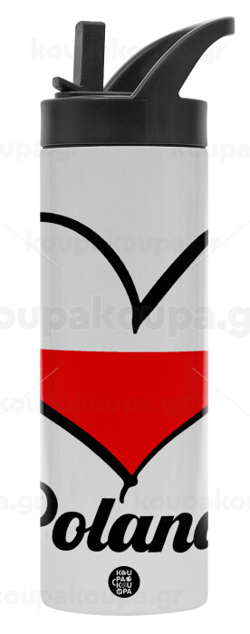 Poland flag, Metallic thermos bottle with straw & handle, stainless steel (Stainless steel 304), double-walled, 600ml.