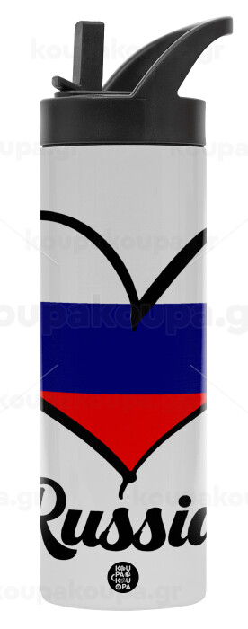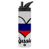 Russia flag, Metallic thermos bottle with straw & handle, stainless steel (Stainless steel 304), double-walled, 600ml.
