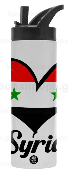 Syria flag, Metallic thermos bottle with straw & handle, stainless steel (Stainless steel 304), double-walled, 600ml.