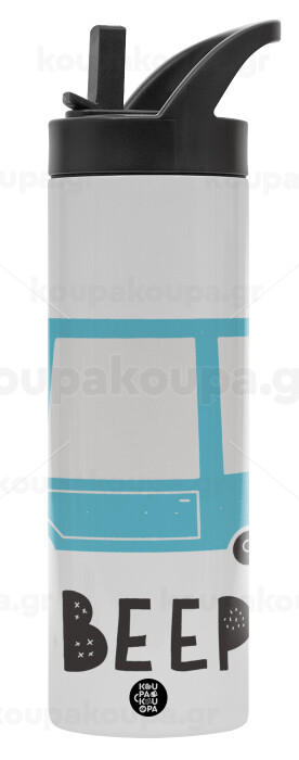 Car BEEP..., Metallic thermos bottle with straw & handle, stainless steel (Stainless steel 304), double-walled, 600ml.