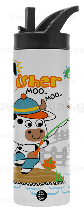 Kids Fisherman, Metallic thermos bottle with straw & handle, stainless steel (Stainless steel 304), double-walled, 600ml.