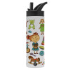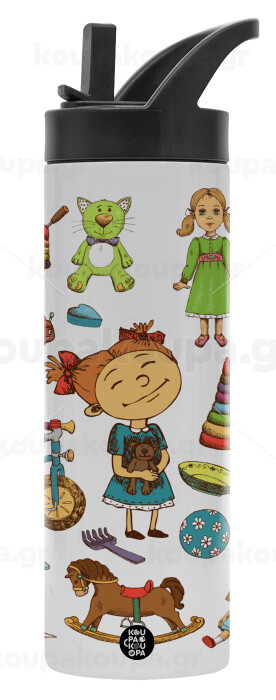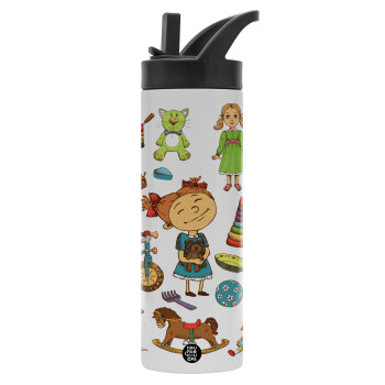 Toys Girl, Metallic thermos bottle with straw & handle, stainless steel (Stainless steel 304), double-walled, 600ml.