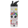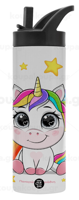 Unicorn baby με όνομα, Metallic thermos bottle with straw & handle, stainless steel (Stainless steel 304), double-walled, 600ml.