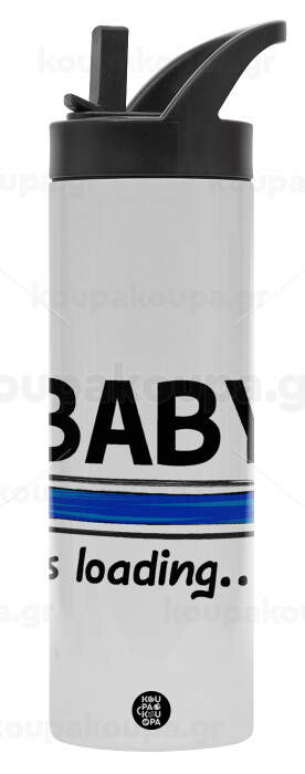 Baby is Loading BOY, Metallic thermos bottle with straw & handle, stainless steel (Stainless steel 304), double-walled, 600ml.