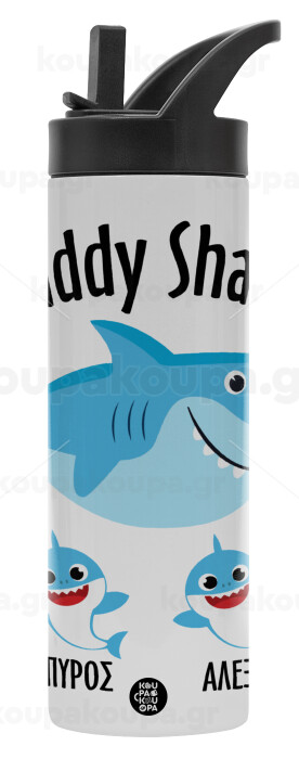 Daddy Shark (με ονόματα παιδικά), Metallic thermos bottle with straw & handle, stainless steel (Stainless steel 304), double-walled, 600ml.