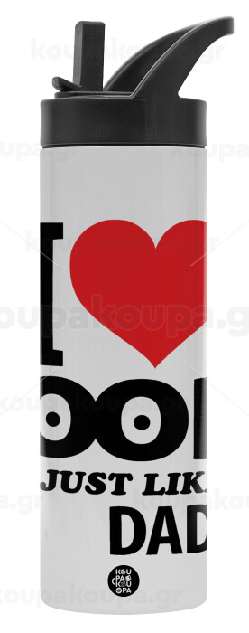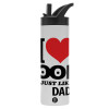 I Love boobs ...just like my daddy, Metallic thermos bottle with straw & handle, stainless steel (Stainless steel 304), double-walled, 600ml.