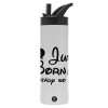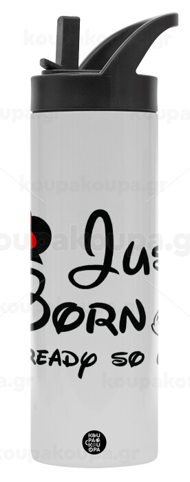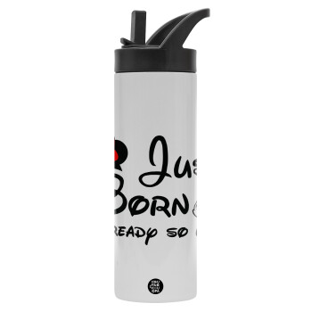 Just born already so loved, Metallic thermos bottle with straw & handle, stainless steel (Stainless steel 304), double-walled, 600ml.