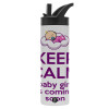 KEEP CALM baby girl is coming soon!!!, Metallic thermos bottle with straw & handle, stainless steel (Stainless steel 304), double-walled, 600ml.