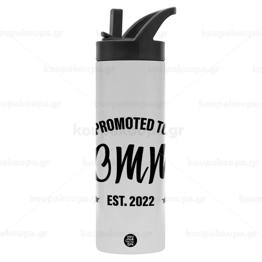 Promoted to Mommy, Metallic thermos bottle with straw & handle, stainless steel (Stainless steel 304), double-walled, 600ml.