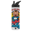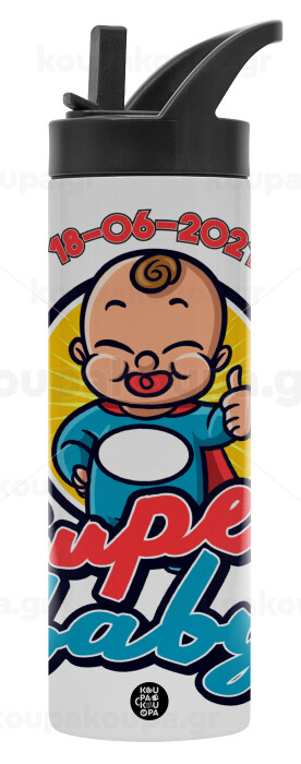 Super baby., Metallic thermos bottle with straw & handle, stainless steel (Stainless steel 304), double-walled, 600ml.