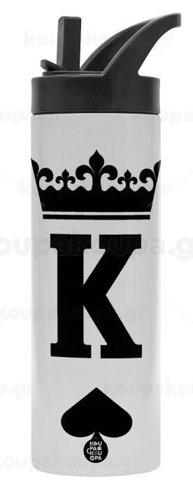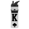 King, Metallic thermos bottle with straw & handle, stainless steel (Stainless steel 304), double-walled, 600ml.