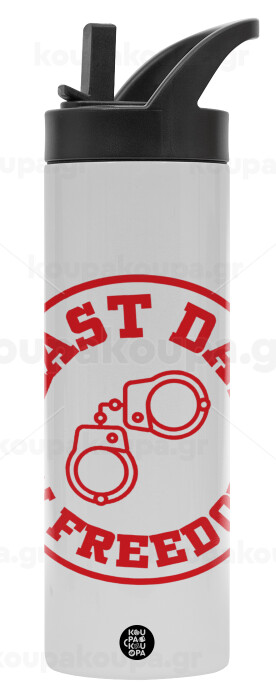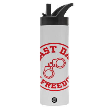 Last day freedom, Metallic thermos bottle with straw & handle, stainless steel (Stainless steel 304), double-walled, 600ml.