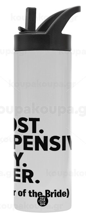 Most expensive day ever, Metallic thermos bottle with straw & handle, stainless steel (Stainless steel 304), double-walled, 600ml.