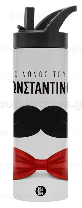 Ο νονός μου, μουστάκι με παπιγιόν, Metallic thermos bottle with straw & handle, stainless steel (Stainless steel 304), double-walled, 600ml.