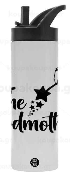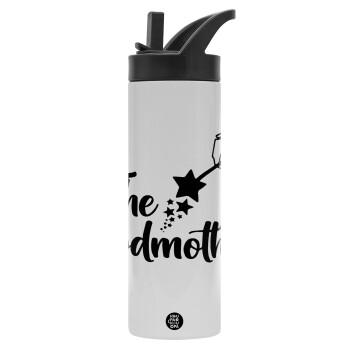 Fairy God Mother, Metallic thermos bottle with straw & handle, stainless steel (Stainless steel 304), double-walled, 600ml.