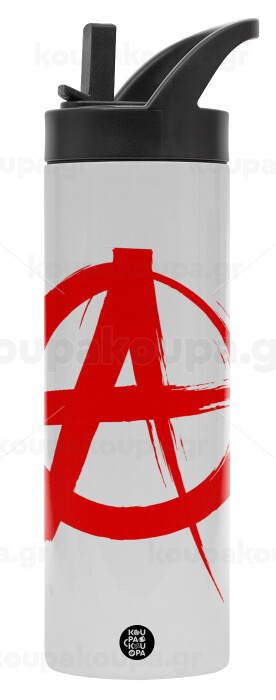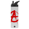 Anarchy, Metallic thermos bottle with straw & handle, stainless steel (Stainless steel 304), double-walled, 600ml.