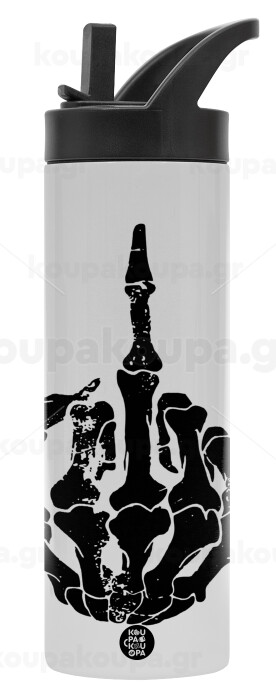 Middle finger, Metallic thermos bottle with straw & handle, stainless steel (Stainless steel 304), double-walled, 600ml.