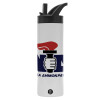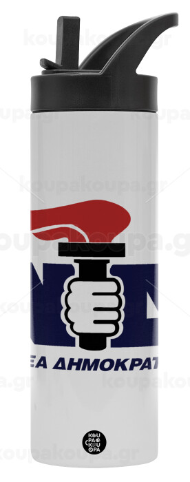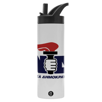 Νέα δημοκρατία κλασική, Metallic thermos bottle with straw & handle, stainless steel (Stainless steel 304), double-walled, 600ml.