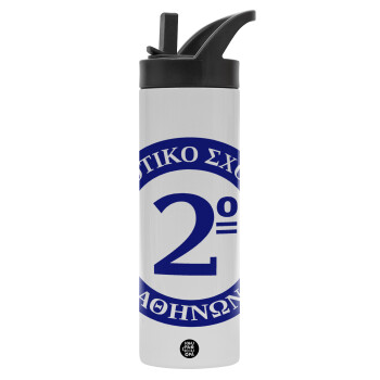 Έμβλημα Σχολικό μπλε, Metallic thermos bottle with straw & handle, stainless steel (Stainless steel 304), double-walled, 600ml.
