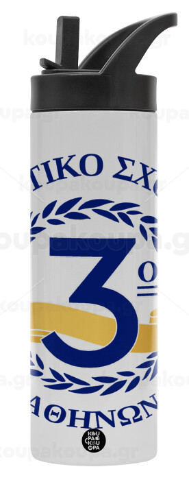Έμβλημα Σχολικό μπλε, Metallic thermos bottle with straw & handle, stainless steel (Stainless steel 304), double-walled, 600ml.
