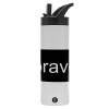 Bravo, Metallic thermos bottle with straw & handle, stainless steel (Stainless steel 304), double-walled, 600ml.