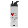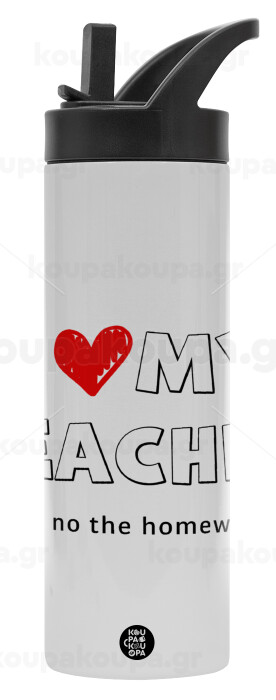 i love my teacher but no the homework outline, Metallic thermos bottle with straw & handle, stainless steel (Stainless steel 304), double-walled, 600ml.