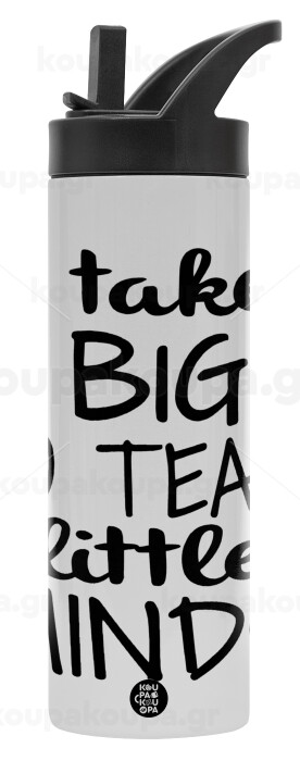 It takes big heart to teach little minds, Metallic thermos bottle with straw & handle, stainless steel (Stainless steel 304), double-walled, 600ml.