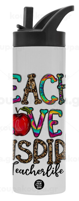 Teach, Love, Inspire, Metallic thermos bottle with straw & handle, stainless steel (Stainless steel 304), double-walled, 600ml.