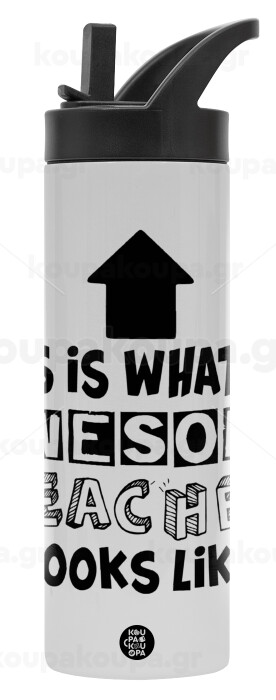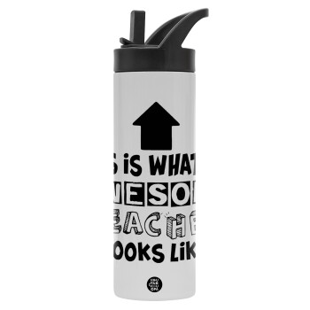 This is what an awesome teacher looks like!!! , Metallic thermos bottle with straw & handle, stainless steel (Stainless steel 304), double-walled, 600ml.