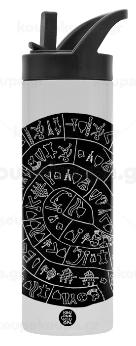 Δίσκος Φαιστού, Metallic thermos bottle with straw & handle, stainless steel (Stainless steel 304), double-walled, 600ml.