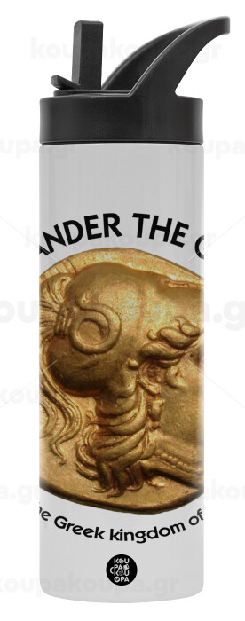 Alexander the Great, Metallic thermos bottle with straw & handle, stainless steel (Stainless steel 304), double-walled, 600ml.