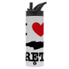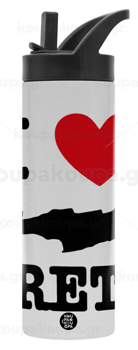 I Love Crete, Metallic thermos bottle with straw & handle, stainless steel (Stainless steel 304), double-walled, 600ml.