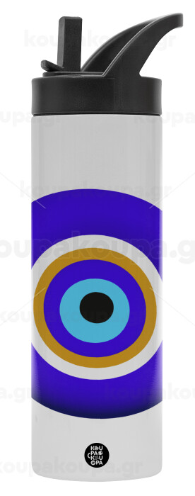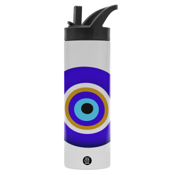 Το μάτι, Metallic thermos bottle with straw & handle, stainless steel (Stainless steel 304), double-walled, 600ml.