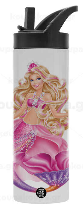 Barbie mermaid blue, Metallic thermos bottle with straw & handle, stainless steel (Stainless steel 304), double-walled, 600ml.