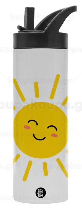 Happy sun, Metallic thermos bottle with straw & handle, stainless steel (Stainless steel 304), double-walled, 600ml.