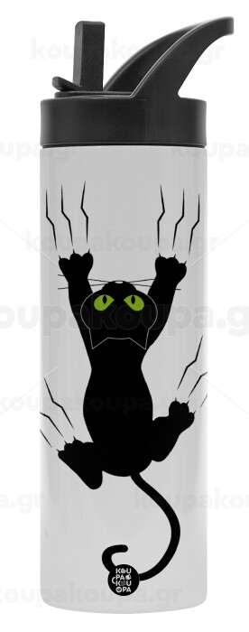 cat grabbing, Metallic thermos bottle with straw & handle, stainless steel (Stainless steel 304), double-walled, 600ml.