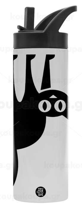 Cat upside down, Metallic thermos bottle with straw & handle, stainless steel (Stainless steel 304), double-walled, 600ml.