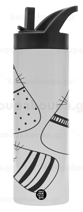 Cute cats, Metallic thermos bottle with straw & handle, stainless steel (Stainless steel 304), double-walled, 600ml.