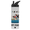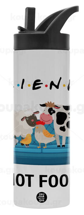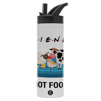 friends, not food, Metallic thermos bottle with straw & handle, stainless steel (Stainless steel 304), double-walled, 600ml.