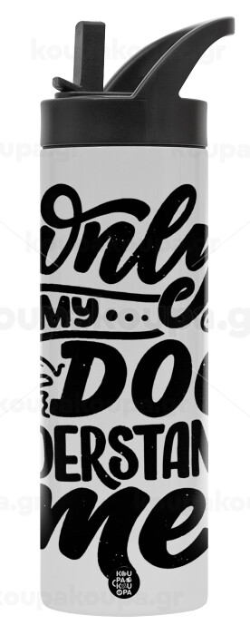 Only my DOG, understands me, Metallic thermos bottle with straw & handle, stainless steel (Stainless steel 304), double-walled, 600ml.