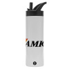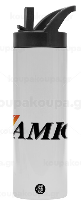 amiga, Metallic thermos bottle with straw & handle, stainless steel (Stainless steel 304), double-walled, 600ml.