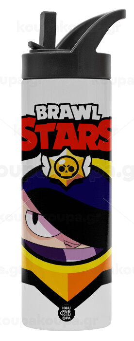 Brawl Stars Edgar, Metallic thermos bottle with straw & handle, stainless steel (Stainless steel 304), double-walled, 600ml.