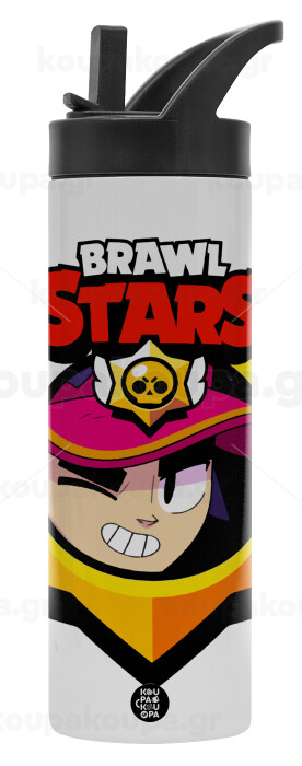 Brawl Stars Fang, Metallic thermos bottle with straw & handle, stainless steel (Stainless steel 304), double-walled, 600ml.