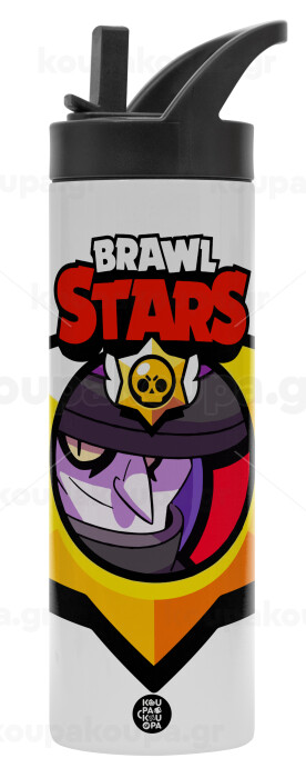 Brawl Stars Mortis, Metallic thermos bottle with straw & handle, stainless steel (Stainless steel 304), double-walled, 600ml.