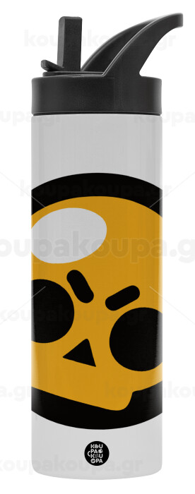 Brawl Stars Skull, Metallic thermos bottle with straw & handle, stainless steel (Stainless steel 304), double-walled, 600ml.