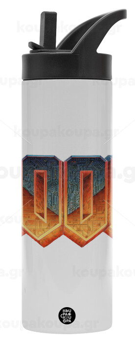 DOOM, Metallic thermos bottle with straw & handle, stainless steel (Stainless steel 304), double-walled, 600ml.
