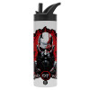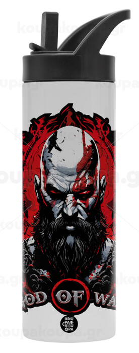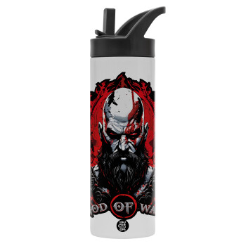 God of war, Metallic thermos bottle with straw & handle, stainless steel (Stainless steel 304), double-walled, 600ml.