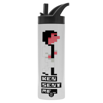 Ken sent me, Leisure Suit Larry, Metallic thermos bottle with straw & handle, stainless steel (Stainless steel 304), double-walled, 600ml.