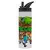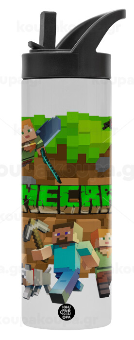 Minecraft characters, Metallic thermos bottle with straw & handle, stainless steel (Stainless steel 304), double-walled, 600ml.