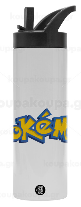 Pokemon, Metallic thermos bottle with straw & handle, stainless steel (Stainless steel 304), double-walled, 600ml.